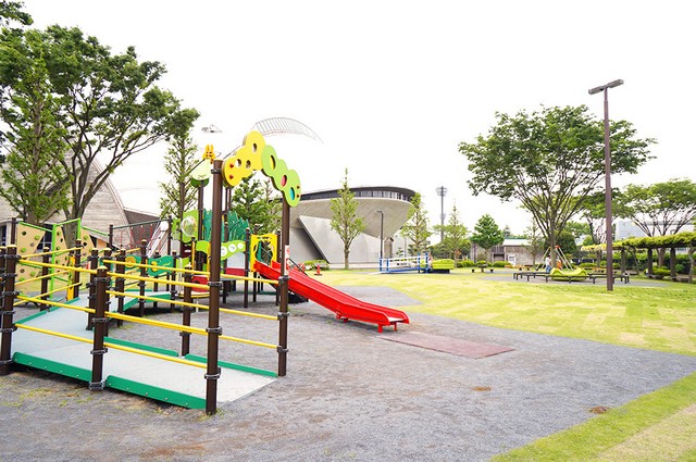 「湘南台公園」から道路を挟んだ駅側には地球儀がシンボルの「藤沢市湘南台文化センター」があります。この建物には「市民センター」や「こども館」があり、「こども館」の展示ホールは子ども100円、大人300円と有料ですが、遊具や世界各国の民族衣装などの展示物があります。外で遊べない日などに子どもたちも飽きずに過ごせそうです。