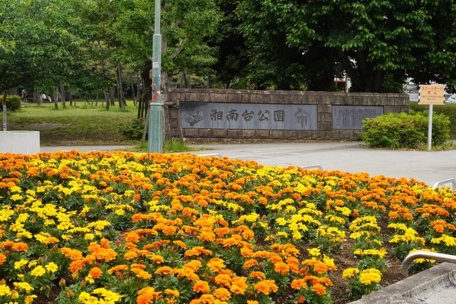 湘南台駅の東側、徒歩10分ほどのところにある「湘南台公園」は、園内には有料のテニスコートのほか、芝生広場、遊具広場などがあります。緑も多く、季節ごとに花がたくさん咲いています。