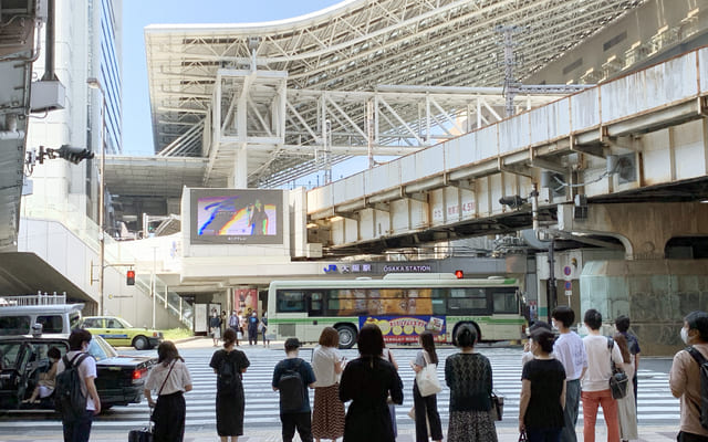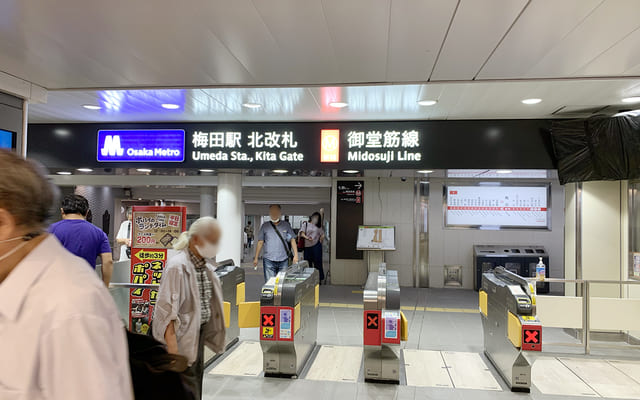 駅名:阪急神戸本線・宝塚本線・京都本線・阪神本線「大阪梅田」駅、駅JR東海道本線・東海道線・福知山線・大阪環状線「大阪」駅、大阪メトロ御堂筋線「梅田」駅、大阪メトロ谷町線「東梅田」駅、大阪メトロ四ツ橋線「西梅田」駅