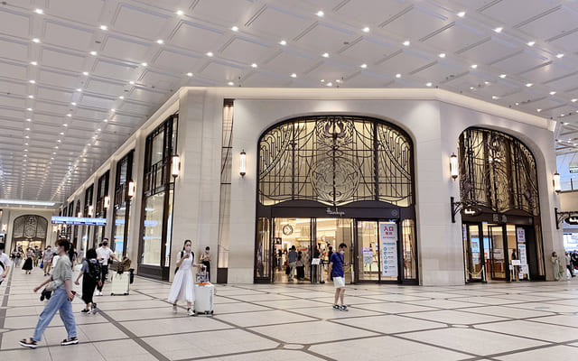 駅前には「阪急うめだ本店」・「阪神梅田本店」・「大丸梅田店」など歴史ある百貨店が立ち並ぶほか、ここ10年で「ルクア大阪」・「NU茶屋町」・「グランフロント大阪」などのファッションビルも増加。