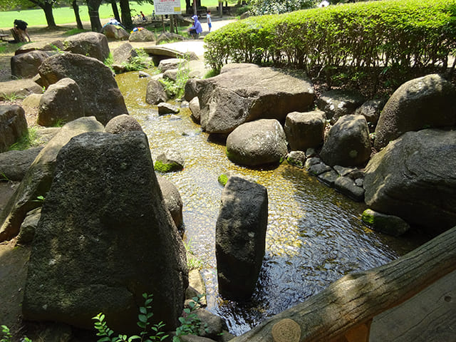 大きな遊具や川、芝生広場などがあり、お子さま連れなら1日中遊べそうです。この日はとても暑い日だったので、川で水遊びをしているご家族も見かけました。