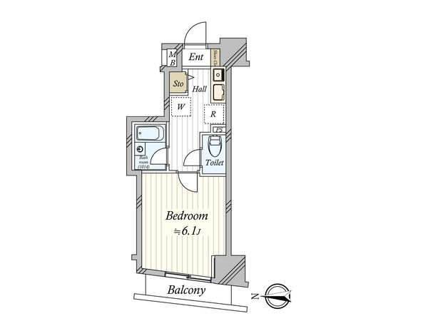 4階 / 1K / 20.27㎡ / 南西向き