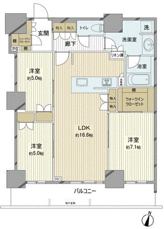 5階 / 3LDK / 72㎡ / 南西向き