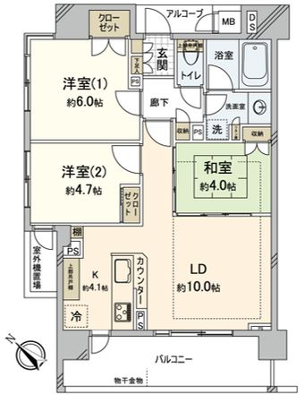 ■京浜東北線北浦和駅徒歩3分の分譲マンション賃貸■ ■インターネットはNTTフレッツ光マンションタイプ導入済■※洋室6.0帖、4.7帖、和室4.0畳のエアコン設置は隠ぺい配管