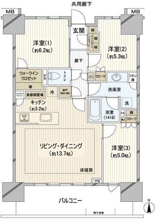 17階 / 3LDK / 71.78㎡ / 北向き