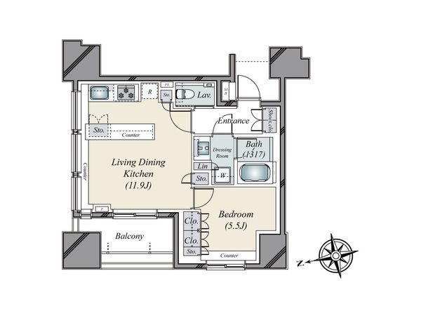 4階 / 1SLDK / 55.18㎡ / 東向き