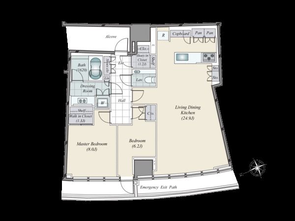 25階 / 2LDK / 96㎡ / 南西向き