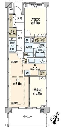 3階 / 2LDK / 53.7㎡ / 南東向き