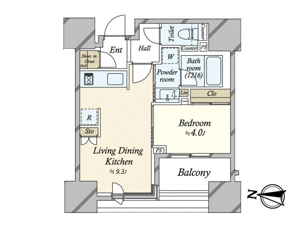 1階 / 1LDK / 33.33㎡ / 北向き