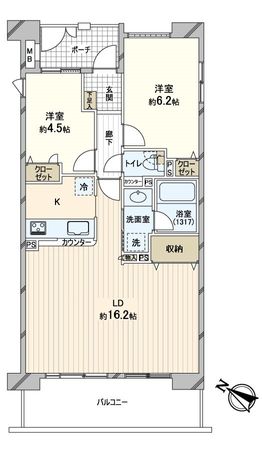 5階 / 2LDK / 62.56㎡ / 南西向き
