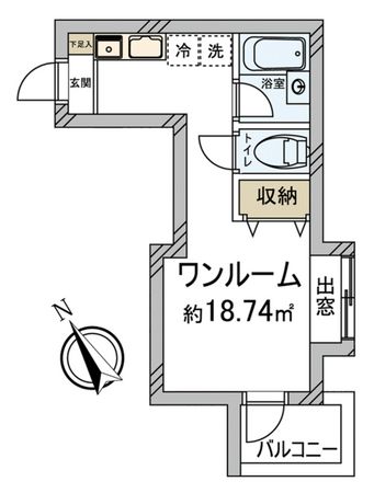 2階 / ワンルーム / 18.74㎡ / 南西向き