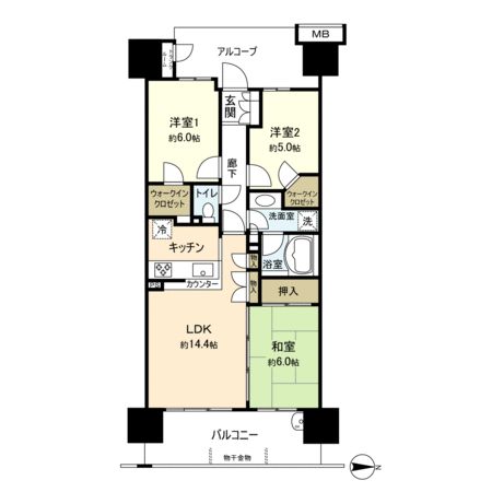 11階 / 2LDK / 64.51㎡ / 西向き
