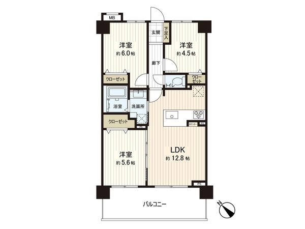 3LDK / 62㎡ / 2005年02月築 / 3階