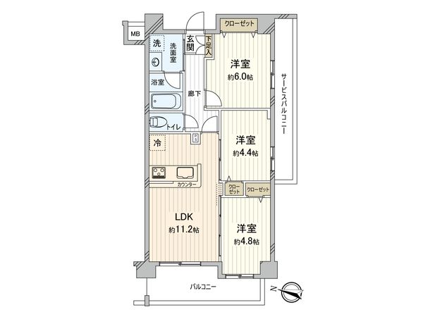 3LDK / 58.7㎡ / 2022年12月築 / 6階