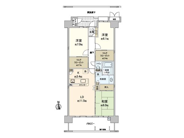 3LDK / 63.64㎡ / 1999年10月築 / 7階