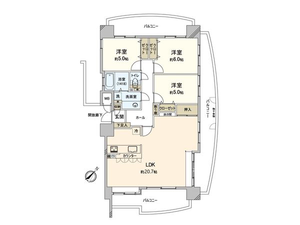 3LDK / 67.78㎡ / 1992年11月築 / 5階