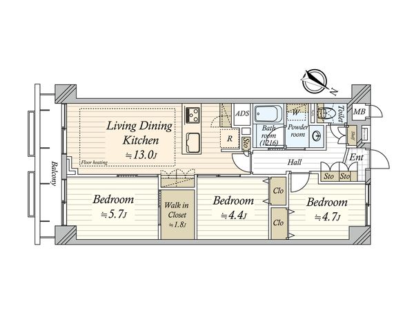 3LDK / 71.44㎡ / 2000年12月築 / 5階