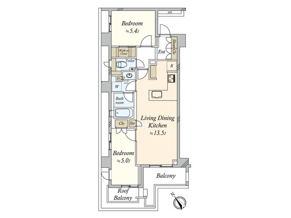 2LDK / 54.28㎡ / 2019年08月築 / 5階