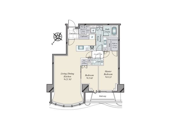 1LDK / 55.7㎡ / 2009年06月築 / 21階