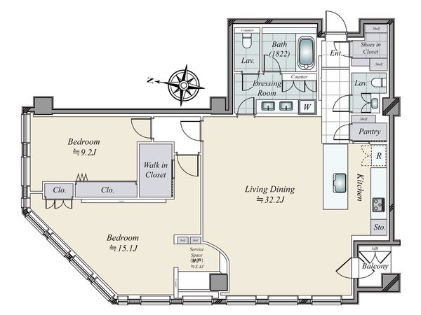 2LDK / 89.31㎡ / 2004年02月築 / 6階
